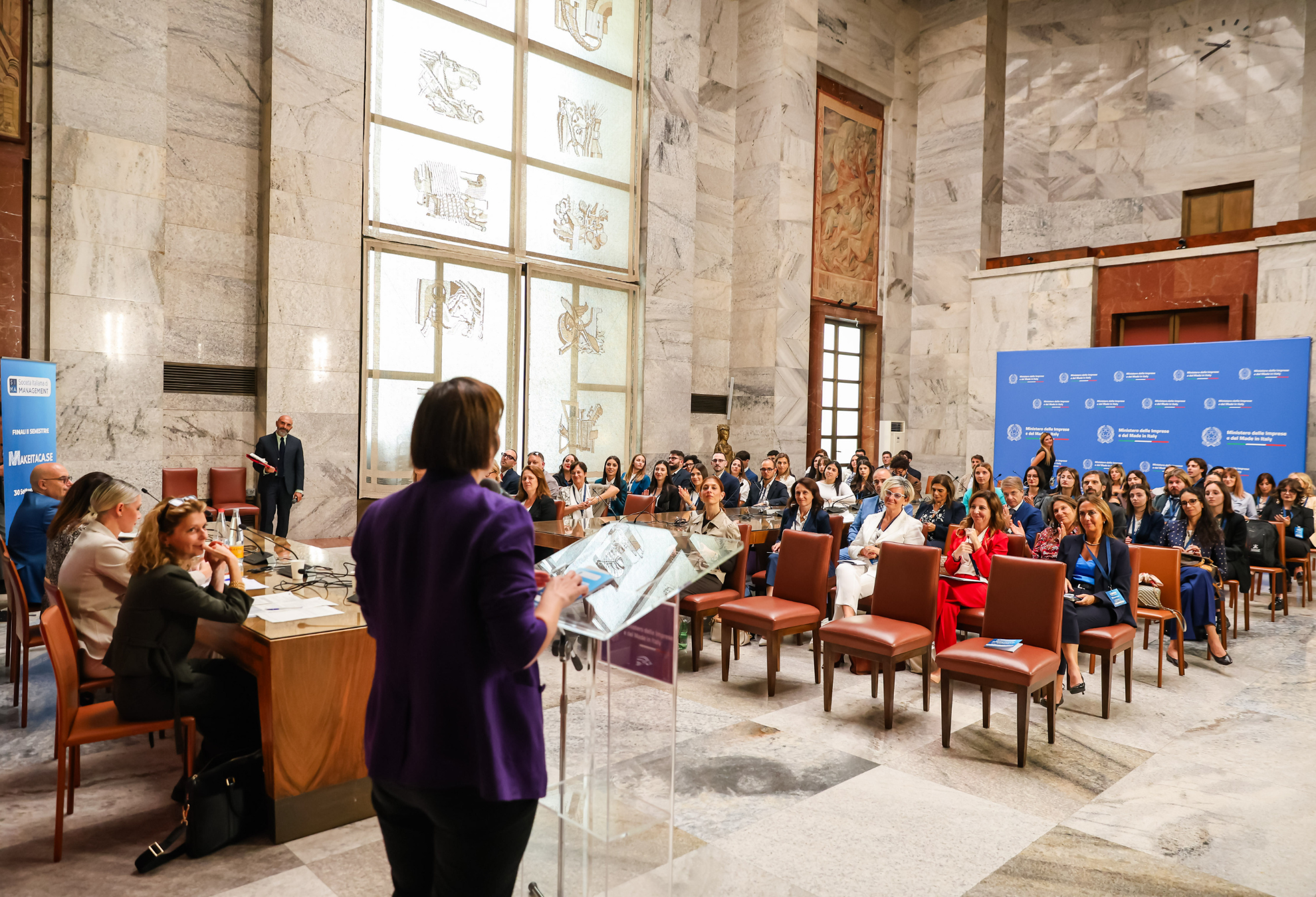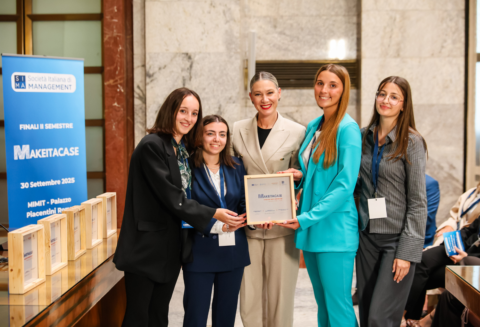 Cuore dell’incontro è stata la finale del contest "Make IT a Case", la competizione nazionale che coinvolge gruppi di studenti – a maggioranza femminile - nell’elaborazione di un business case su una azienda del territorio e di un’innovazione sui temi della sostenibilità, transizione digitale o energetica. Il contest, realizzato in collaborazione con la Società Italiana di Management, è una iniziativa mirata a rafforzare e far emergere la leadership femminile nella gestione d’impresa parte del programma Imprenditoria Femminile. Al Contest del II semestre 2024/25 hanno partecipato complessivamente 106 progetti provenienti da 24 atenei.